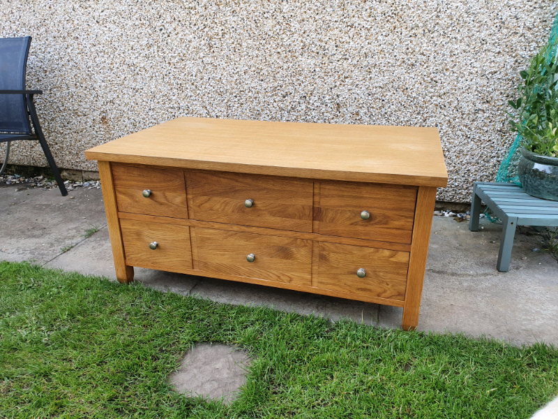 NEXT SOLID OAK COFFEE TABLE | in Chelmsford, Essex | Gumtree from i.ebayimg.com Embrace a classic look with oak tables, while for a contemporary finish check out the glass and marble designs. This table makes it the perfect piece of furniture to place plants or home décor on. At next, our huge collection ranges from small round to marble and glass styles. The hexagonal base is made from metal and is available in different finishes so you can pick the best one for your space. Accentuate the look with elegant lighting in the form of floor or ceiling lamps. Or for compact spaces, you could choose nest of tables that are an elegant addition. Replicated blackened wood finish with gray textural grain. Coffee tables help fulfill this need, but you can only reach it from one part of the room, and the real estate quickly gets cluttered.